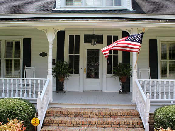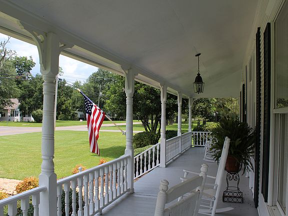 Large rear porch and brick patio overlook beautifully shaded backyard with picket fencing. 11' ceilings in original portion of front of house; rear addition was built in 1990 and has 9'9" ceilings. 3 piece crown moulding with dental mould, lg baseboards. Upper level has 2 bedrooms and loft area and 7' ceilings. Due to historical age of residence bedroom count does include a front bedroom that has no built-in closet. Antique heart pine floors in original portion. 18000 KW whole house generator. Plantation shutters over most lower level windows. Windows are metal clad Pella insulated except for the original wavy glass sidelites that flank front leaded glass door. Alder wood kitchen cabinetry, den mantle and den bookcases. 2 live fireplaces w/ gas logs and 2 gas log only.