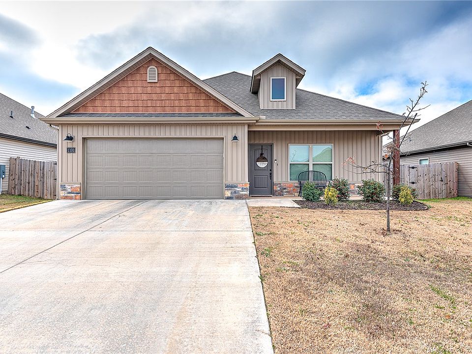 Perfectly situated in the heart of Centerton and just steps from top-rated Bentonville West High School, this newer-built 3 bed/2 bath home boasts a beautiful curb appeal and a warm, inviting interior that has been meticulously maintained and filled with thoughtful charm. Enjoy easy access to all that Northwest Arkansas has to offer—including downtown Bentonville, I-49, Walmart Home Office, and an easy 15 min drive to the airport. Lovingly maintained and thoughtfully updated, the property features beautiful finishes throughout and a modern, neutral color palette that compliments any style! Sleek granite countertops throughout—including the kitchen—pair beautifully with the stainless steel appliances and a gas range, making the space both stylish and functional. Lots of space to run, roam, and entertain in the fenced backyard! Don’t miss out on this charming home, perfectly located and ready to welcome you home!