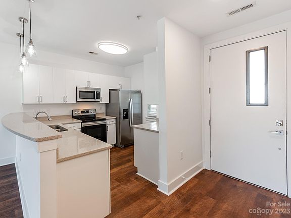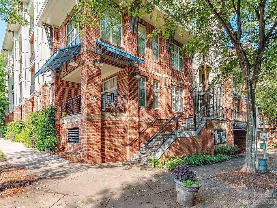 Welcome home to this light & bright penthouse in Third Ward. Steps away from Frazier Park, Greenway Trails, BofA Stadium for Panthers & Charlotte FC games, Truist Field & more. Updates include: fresh paint throughout, newer HVAC (2019), tastefully updated primary & secondary baths and new LVP floors in living areas & bedrooms. Updated kitchen equipped with white cabinets, quartz counters, newer SS appliances & a breakfast bar. Kitchen overlooks an open living area filled with natural light & perfect for entertaining. Balcony off the main living area provides city views of BofA Stadium. Primary suite features a nicely sized walk-in closet & beautifully updated primary bath w/dual vanities. A secondary bedroom, full bathroom & laundry closet complete the condo. Amenities include a welcoming courtyard & outdoor grilling. Secure building with gated parking garage & 1 assigned parking spot. This amazing top floor condo w/timeless updates, city views & an unbeatable location is a must see!