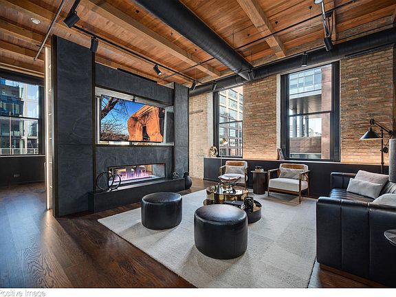 Rare opportunity to rent a finely furnished, 1800 SQFT, glamourous loft in the heart of Chicago's West Loop neighborhood! This exquisitely finished 3 bed, 2.1 bath residence has sleek design and cool, urban vibes. Barely lived in, this home features 14ft timber ceilings, exposed brick and ductwork, hardwood flooring, and custom lighting design throughout. Double blackout shades line the windows of the living room and primary suite, while the third bedroom (currently a den/office) has single blackout shades. An entry foyer with a dramatic floor-to-ceiling mirror slides back to reveal a walk-in coat and storage closet. The foyer leads you down a hallway lined with backlit, glass-faced shelving into the impressive living room. This show-stopping space features a two-sided water vapor, color changing fireplace, an accent wall clad in Phillip Jeffries wallpaper, and giant windows with honed granite windowsills complete with LED lighting showcasing eclectic urban views. The living room opens into a sophisticated Italian kitchen with slab marble countertops and waterfall island, top-of-the-line Bosch and Fisher Paykel appliances, streamlined, two-toned cabinetry, glass display shelving, and a center island with breakfast bar. On the other side of the two-sided fireplace is a spacious dining room with large, west-facing windows. The living room TV is on a swivel and can easily change places with the dining room artwork above the mantel. The elegant primary suite offers a private, serene escape and enjoys abundant natural light, a custom walk-in closet, and a luxurious, spa-like ensuite bath with a steam shower, heated floors, an oversized sink with two faucets, and custom light fixtures. Sophisticated fogged glass paneled French doors in the dining area open into the second bedroom, currently configured as the perfect den/home office with a couch that folds out into a queen-sized bed. A sleek, full bathroom with heated floors, double vanity, black marble counters, and an oversized shower Jack-and-Jills into the graciously sized third bedroom. A beautifully appointed powder room and a laundry room with LG washer and dryer complete this space. Long and short-term lease options available with a 6-month minimum lease term. Dogs under 30 lbs. allowed upon landlord approval with additional pet deposit and pet rent. One assigned parking space in the attached garage included in the rental price. Located at the center of Chicago's vibrant West Loop neighborhood within close proximity to Google offices and McDonalds HQ, Fulton Market restaurants and nightlife, SoHo House, and public transportation, this is the perfect rental property in the best possible location.