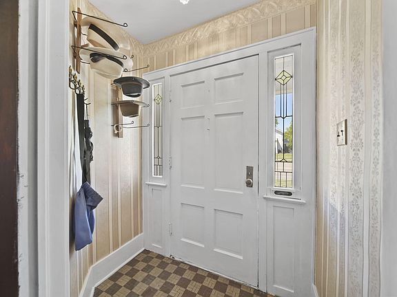 and three stunning prairie-style-stained leaded glass doors. Enjoy the bright enclosed porch on the west side and a lovely rear den bathed in natural light from numerous windows and offering great southern exposure. Upstairs, you'll find a primary bedroom with a walk-in closet, along with two additional bedrooms and the main bathroom. A walk-up attic with a wooden floor provides ample storage possibilities. Adding to its charm are beautiful Austrian glass doorknobs found throughout the home. The full basement offers practicality with a washer and dryer, workbench, and plenty of storage space. Outside, a nice large parking patio provides easy access to the two-car garage, complete with its own workbench. The lovely fenced-in backyard and corner lot location complete this wonderful property, offering immense potential for its next fortunate owners. See Features and Updates Sheet for full details! Conveniently located near a variety of amenities, including interstate access, and exciting entertainment options. Schedule through Showing Time. A licensed agent must be present during showing. Buyer/agent to verify all info & measurements.