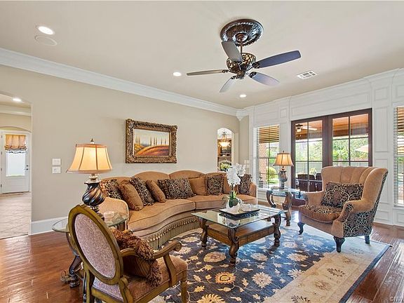 This home is swoon-worthy with its warm coordinating neutrals and luxurious designer details. You will love the inviting curb appeal that leads you to gorgeous wooden entry doors. Formal dining room open to a spacious living area with fireplace, built-ins and incredible views of the pool. Gourmet kitchen equipped with GE Monogram appliances- 6 burner gas stove- 2 ovens- warming drawer & ice maker allows for easy entertaining. Remote master suite with spa like bath. Awesome outdoor living space with beautiful outdoor kitchen, stunning pool with sheer waterfalls, hot tub and gas fire pit. This home has everything!