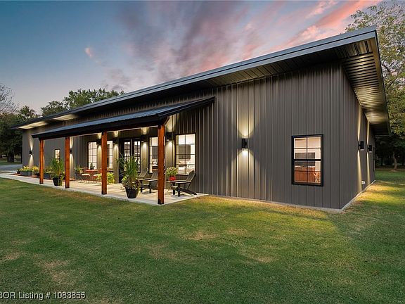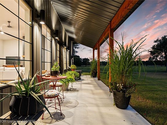 Nestled in the rural community of Charleston, just 25 min from Fort Smith, this 2024 custom-built home combines designer details with complete functionality. From the moment you step through the west-facing glass double-entry doors, sunset views & soaring 14-ft ceilings welcome you into a living space designed for both beauty & comfort. At the heart of the home, the kitchen offers a perfect blend of elegance & practicality. Granite countertops, a deep sink, & custom cabinetry with built-in organization complement a propane cooktop & pellet ice machine, while durable LBP flooring ties the open design seamlessly together. A wood-burning insert fireplace warms the space creating a cozy yet striking centerpiece for gatherings. The primary suite is a private retreat positioned for sunrise views with its own east-facing patio access. Featuring nine-foot ceilings, a large walk-in closet, & a spa-inspired ensuite, it offers a walk-in shower, deep soaker tub, custom vanity, generous storage, & a secure in-home safe room. 2 additional bedrooms also include walk-in closets, while the oversized mudroom with cherry counters & the spacious laundry room with built-in storage add ease & efficiency to daily living. Beyond the home, the property delivers the full country lifestyle across 30 fenced acres. The land is flat & usable, well-suited for running cattle, bailing hay, or simply enjoying the peaceful views. 2 ponds, 2 enclosed pens for small farm animals, & mature trees enrich the setting. Outbuildings include a 20x30 & a 30x30 carport, while the attached 1,200 square ft garage provides versatility with (1) 8-ft and (2) 10-ft garage doors. Efficiency & comfort go hand in hand with batt insulation, a ducted mini-split heating & cooling system, & a tankless hot water heater. Blending modern design, striking details, & rural tranquility, this exceptional property offers a lifestyle where function meets beauty, with every sunrise & sunset.