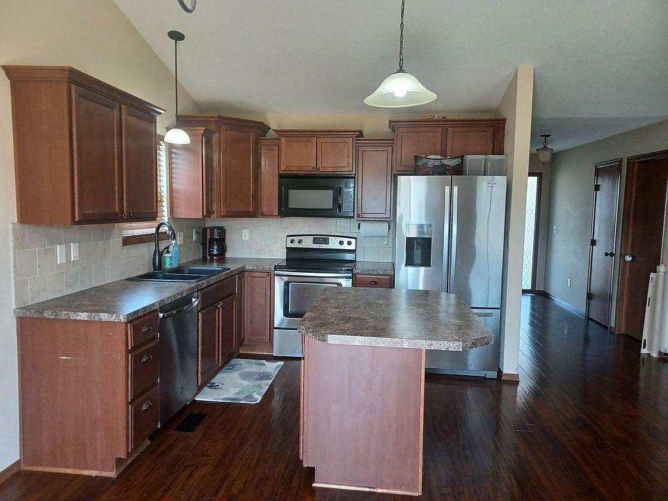This is a must-see, beautiful 4 bedroom, 3 bath home located in the Harvest Ridge development in far West Wichita. This home sits on a cul-de-sac, and is located close to dining, shopping, groceries, and more! It is in the Goddard School District, and is near Tanganyika Wild Life Park, Prairie Sunset Trail, and Pawnee Prairie Park! This home has all the amenities including a 3-car attached garage with opener, central heat/air, washer/dryer hookups, plus you have access to the community playground!! The main level boasts a wide-open living space for the kitchen, dining room, and living room. The kitchen features an island and stainless-steel appliances including a stove, refrigerator, and a dishwasher. The master bedroom is also on the main level, which features a large walk-in closet, and an attached bathroom that features a double vanity! There is an additional bedroom, bathroom, and laundry on the main level. There is an additional family room in the basement with views out to the backyard, as well as, 2 bedrooms, and a full bathroom. The backyard is large, privacy fenced, and has a deck as well! Pets are ok, upon approval, with a refundable deposit. Tenant is responsible for all utilities including trash and lawn care. Thank you for looking! **1-year lease** **Renter's Insurance Required** **24-hour Emergency Maintenance Available**