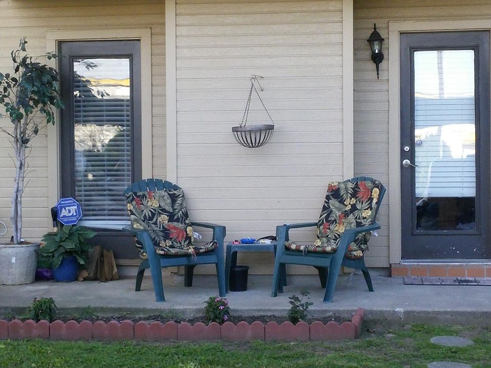 Downstairs unit next to parking lot. Master BR has long walk in closet. Master bath was remodeled with walk-in shower tiled to ceiling. Hall bathroom was remodeled with new tile and vanity. Kitchen pass-through to dining area was enlarged to give an open concept. Multiple shelves were added to laundry area. Airhandler was replaced recently; utilities are low due to the condo above and next door shields the afternoon sun. New roof was completed 3 years ago. All steps are being repaired. HOA stays on top of everything to keep property lovely and park like. Every condo gets 1 covered parking space.