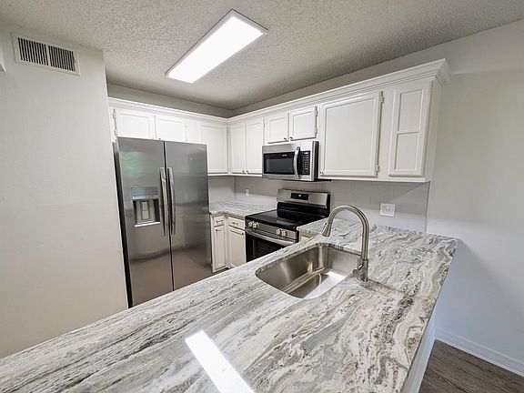 This beautifully remodeled downstairs condo in the highly sought-after Bayou Rouge community features water and damage resistant luxury vinyl plank flooring, updated bathrooms, new counter tops, new lighting, new plumbing fixtures, all new stainless steel appliances, garden tub, Walk in closet, fireplace, washer and dryer, and a top notch landlord. The Bayou Rouge community is quiet and secluded yet centrally located. The community features video monitoring at the entrance/exit and various places throughout the development, free water, sewer and trash, covered permit and visitor parking, well-kept pool and clubhouse, beautiful and well maintained grounds, top 1% management, and a robust and friendly community. Come see it to believe it!
