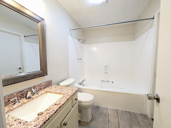 Freshly Painted upstairs unit in the highly sought-after and extremely well managed Bayou Rouge community. Unit features cedar-beamed cathedral ceilings, new countertops, water and damage resistant luxury vinyl plank flooring/ceramic tile throughout (no carpet), en suite washer and dryer, garden tub, walk in closet, balcony, and a great landlord.