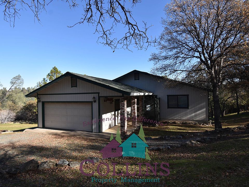 Enjoy a quiet and private setting. The main house has two bedrooms and two bathrooms. Just off the living room is a covered deck with a wonderful view. Lots of open space around the house. Vaulted ceilings in the living room and a wood stove. There is central heat and air conditioning too. Indoor laundry with washer and dryer provided. Underneath the deck are two large bird cages. The owner was into rescuing birds. The other unit on the property has two levels and has many possible uses. The lower level floor is a cement slab and there is a sink and a bathroom on this level. Upstairs has multiple uses also. It would make a nice office or playroom. -No smoking -No co-signer -Renter insurance of $300,000 required prior to occupancy -Pets allowed. One-time pet fee of $200 per pet, and $25 per month extra per pet -Deposit is twice the monthly rent If you are serious about this property please fill out an application on our website and we will be in contact to schedule a showing appointment. PLEASE DO NOT go on property without an appointment. Collins Property Management 426 Sutton Way, Suite 104, Grass Valley CA 95945 BRE#01273680