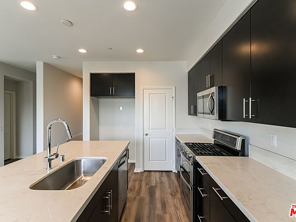 Built in 2017, this Downey three-story home offers quartz countertops, stainless steel appliances, and a two-car garage.