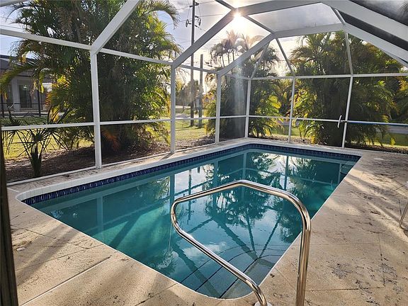 Laid-Back Florida Living in East Englewood! Discover this inviting 2-bedroom, 2-bathroom home with a bonus room and private pool, perfectly situated on a spacious HALF ACRE LOT just 7 miles from Englewood Beach. This well-maintained property features a split-bedroom floor plan offering privacy and functionality. The cathedral ceilings enhance the open, airy feel of the main living areas, while the bonus room provides flexible space for an office, den, or guest area. Enjoy the best of outdoor living with a private screened pool, complete with direct access from the guest bathroom—ideal for entertaining or cooling off on warm Florida days. The large lot provides ample room to add a detached garage or workshop. The irrigation well is an extra bonus! Located in a non-mandatory flood zone, this property offers peace of mind and convenience in a sought-after neighborhood close to shopping, dining, golf, and the Gulf beaches. Experience the laid-back coastal lifestyle you’ve been looking for in East Englewood!