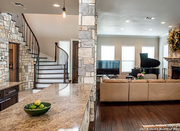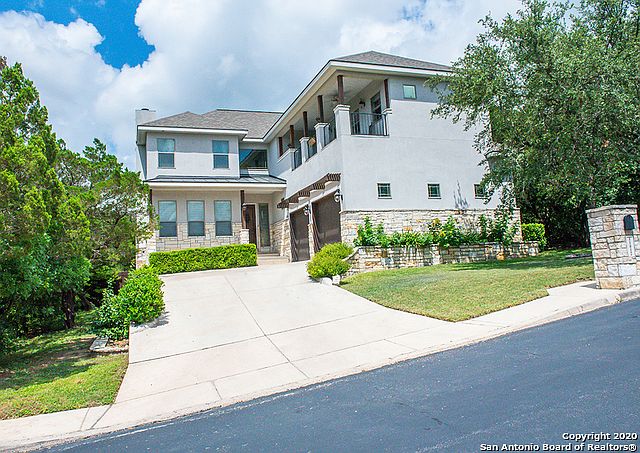 VIEWS! VIEWS! VIEWS! Spectacular views from the front and back of this beautiful modern Texas Hill Country Home. Front door opens to an inviting great room concept. Open floor plan allows everyone to share in precious moments. Winding rod-iron and mahogany staircase leading to the second floor is a striking feature in this home. Texas stone wine cellar is tucked neatly under the staircase. Huge U shaped kitchen, perfect for entertaining, is the focal point of the first floor of this home. Kitchen features stainless steel appliances, abundance of custom cabinets, and stunning granite counter-tops. Primary suite down features double glass doors that open to the back deck, double vanities, jetted Kohler spa tub, amazing walk thru shower with 6 shower heads. Upstairs enjoys two covered patios with spectacular bluff and city views. Enjoy evenings playing pool on the over-sized outdoor entertainment room, or movie night in the media room. Just off Bandera Road and close to 1604, 211, and 151, this home is conveniently located to Sea World, Six Flags, La Cantera and the Rim Shopping. Country living at its finest.