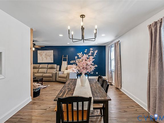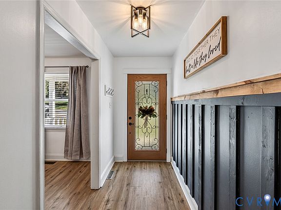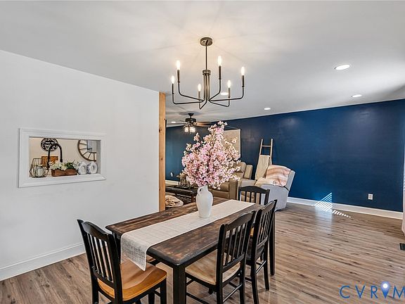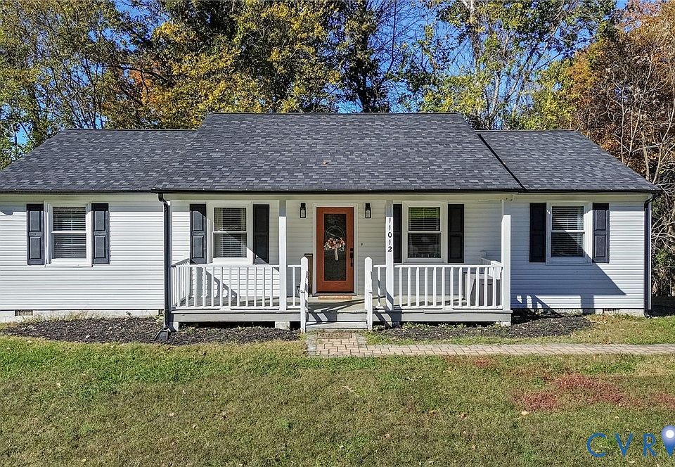 Welcome home to this charming ranch-style retreat featuring a classic rocking chair front porch perfect for relaxing evenings. Inside, you’ll find a spacious dining room and a cozy living room highlighted by a beautiful stone gas fireplace. The kitchen offers white cabinetry, stainless steel appliances, and a stylish tile backsplash. Vinyl flooring flows seamlessly throughout the main living areas. Two generously sized bedrooms share an updated hall bath, while the primary suite boasts dual closets and a beautifully updated en suite bath with a walk-in shower. Enjoy peaceful views from the back deck overlooking the wooded backyard — the perfect spot to unwind or entertain.