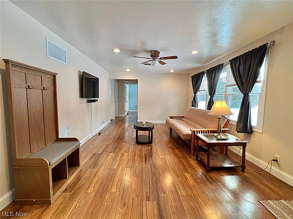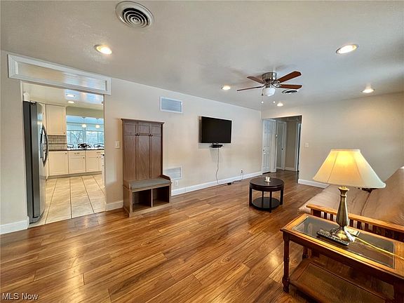 Enjoy One Floor Living in this Updated 3 Bedroom Brick Ranch! Bright & light Living Room welcomes you with newer wood laminate flooring. Remodeled Kitchen & Dining combination with abundance of cabinets, granite counters, ceramic floors & backsplash, recessed lighting, breakfast bar & dining area with sliders to patio & deep backyard. All 3 Bedrooms have wood laminate flooring & the full bath has been updated with granite vanity, ceramic tub surround & flooring. Central air. Vinyl windows. Newer HWT & water softener 2020. Public sewers. 1+car attached garage & concrete driveway. Close to Legends Lake Golf Club and just minutes to shopping, restaurants, parks & Chardon Square.