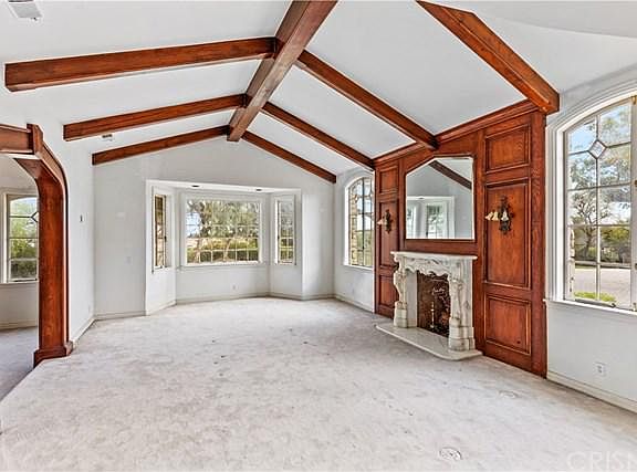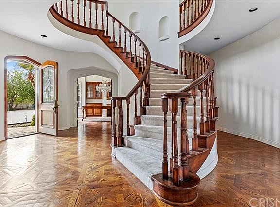 Welcome to the prestigious guard-gated community known as Monteria Estates. This custom Tudor home is a rare find amongst the best private schools in the area, just minutes away from both Sierra Canyon and Chaminade Preparatory. As you enter the home, you are greeted by grandiose cathedral ceilings, breathtaking chandeliers, and a spiral staircase. The six firestone fireplaces give this home its unique trademark. The front formal living room is adorned with floor to ceiling wainscoting and wood-beamed vaulted ceilings. The great room has high ceilings, a wet bar, and a grand fireplace at the center. The formal dining room and cooks kitchen make this home perfect for anyone who enjoys entertaining. The study/library is one of the most treasured parts of the home with custom woodworking and fireplace. This 6 bedroom, 7 bathroom home, offers an extravagant master bedroom with a custom wood sauna, marble spa bath, and stand up steam shower. The enormous bonus room adds a great feature for entertaining, with a separate entrance. Parking will never be a problem with the 3 car garage and vast concrete circular driveway. This 98,000 square foot lot includes a gorgeous pool and spa, the rest is awaiting your personal touch. Additional room for development such as tennis court, guest house, AND/OR equestrian area. Horse friendly!