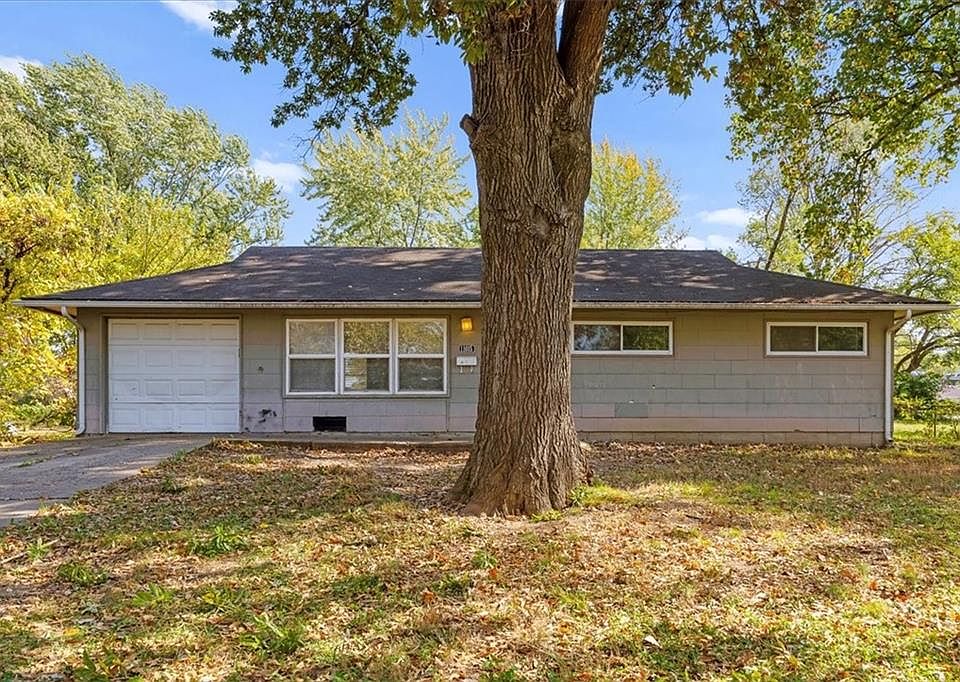 This three-bedroom ranch sits on a slab foundation with everything on one level, making it a low-maintenance option for either an investor or an owner-occupant. The attached garage and private driveway provide off-street parking, and the fully fenced backyard is ideal for pets, storage, or outdoor use. Inside, tile flooring runs through the main living areas for durability and easy upkeep, with carpet in the bedrooms for comfort. The kitchen offers an eat-in layout with direct access to the patio and backyard. Laundry is located just off the kitchen for convenience. Located near 470 and Longview, this home offers quick highway access and sits in an area with steady rental demand for those considering it as an investment.