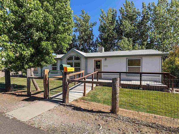 COUNTRY CHARMER sitting on just under an acre of land with immaculate established landscaping. This fully fenced property offers a little bit of everything from the fenced pasture with a BARN to the lush lawn with a firepit. With multiple gated entry points, this property is very access friendly for all recreational vehicles. The interior of the home offers an open floor plan with ample natural lighting. A generously sized living room perfectly accommodates a large sectional while leaving ample space to create a formal entry. The kitchen offers a breakfast bar, upper display cabinets, stainless steel appliances, solid surface counters and an open dining area off the side. A laundry room is conveniently located off the kitchen with storage cabinets and exterior access. The master suite offers a walk-in closet and both a soaking tub and stall shower. Guest rooms are opposite the master suite with a bedroom, office and full bathroom.
