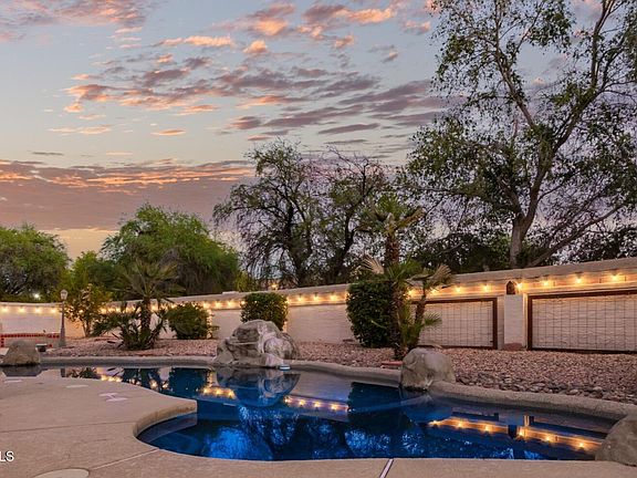 OWNED SOLAR, NEW POOL EQUIPMENT, NEWER HVAC, ROOF, FLOORING & MORE! Don't miss this beautifully maintained 6-bedroom home in the dreamy Estates at Garden Lakes! Enjoy soaring vaulted ceilings, a striking wooden banister, recessed lighting, plantation shutters throughout, and FIVE STORAGE CLOSETS. Generously sized bedrooms (approx. 12'x13') provide comfort and flexibility. The downstairs bedroom with a private exit and mini-split AC offers the perfect setup for next-gen living, a home office, or guests, with a full bathroom adjacent. Set on a rare OVERSIZED LOT with no backyard neighbors, the expansive yard features a lush grassy play area, built-in BBQ, gas fireplace, play pool, and spa—all surrounded by mature landscaping for privacy and charm. Updated, exceptional, and move-in ready!