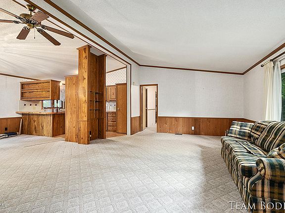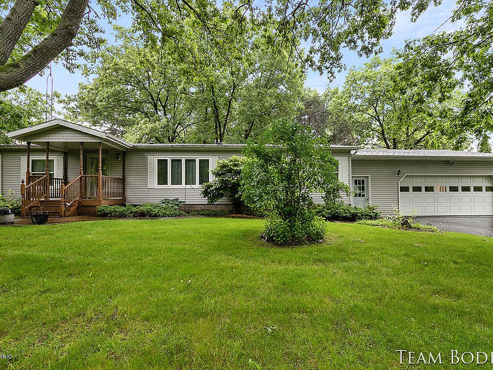 Lowell/Saranac schools 3 bedroom 2 bath Ranch on over an acres of manicured lawn,paved Driveway,full basement cathedral cielings all appilances included, sliders to a deck in a very private yard leading to a large pole barn with water heat,and a custom Generac generator,for the property,an over sized attached Garage with entry to the basement, Estate property this is a great place to live.