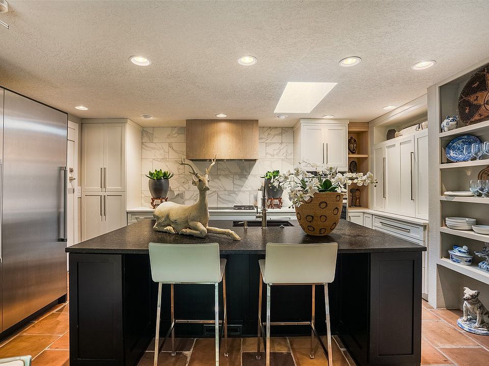 Beautifully remodeled contemporary southwestern townhome in the Academy Ridge neighborhood. 3 bedroom, 2 full bath, 2 car garage carefully crafted within 1790 Sq. Ft of heated living space. An open-air floorplan is perfect for entertaining. Direct access to the private outdoor patio from common rooms adds to the indoor-outdoor feel. Enjoy the tranquility of the patio water feature and mature landscaping that wraps around the owners suite, living room and family room. The leathered granite kitchen island is perfect for quick-bites, while the cook enjoys conversation and views through the family room. Custom cabinetry takes advantage of every inch as the chef cooks up the latest recipe using its high-end appliances. Thermador columns include refrigerator, wine cooler and freezer. A formal dining room with skylight and integrated bar welcomes more intimate occasions. Owners suite features walk-in closet, double vanity, jetted tub and separate shower. Two additional bedrooms share hallway full bath. Lush front and backyard landscaping on a smaller scale lets you enjoy the green without all the work. This home is a breath of fresh air.