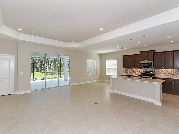 This all-new home in Silverleaf features an airy, open layout and is completely move-in ready.. The expansive great room opens to the gourmet kitchen, which features an island, large pantry and breakfast nook, spacious countertops and upgraded maple cabinetry. A separate dining room is great for more formal meals and entertaining. The spacious master suite includes wall-to-wall plush carpeting, two walk-in closets and a master bath with a walk-in shower and private water closet. The two secondary bedrooms are situated close to the second bath. A large covered lanai off the great room is included, with plenty of space for outdoor living and a true outdoor retreat. Visit this Neal community in Parrish and see this beautiful new home. Call today for more information and to schedule an appointment.