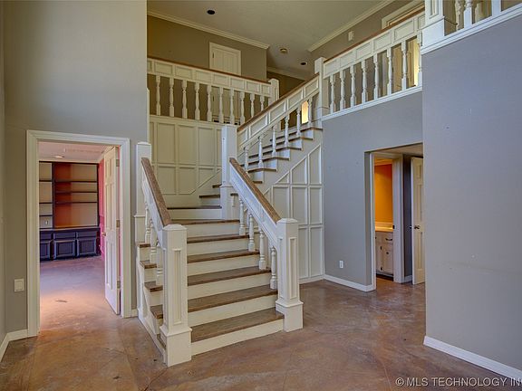 Come see this area in Philcrest Addition on 3/4 acre with mature trees on a cul-de-sac. This area is located in Jenks Southeast Elementary School. You will love the privacy. The home offers plenty of room with 4 large bedrooms with baths and lots of storage. The master suite is spacious with private bath and huge walk in closet with shelving. The downstairs family room has plenty of room for furniture and a big TV and is adjacent to dining room & kitchen. Kitchen has an island and abundance of cabinets plus breakfast area and walk in Pantry overlooking the huge back yard and deck. A spacious office is located downstairs with built-ins and privacy. Side entry 3 Car garage with a lengthy driveway for extra parking. As-Is.