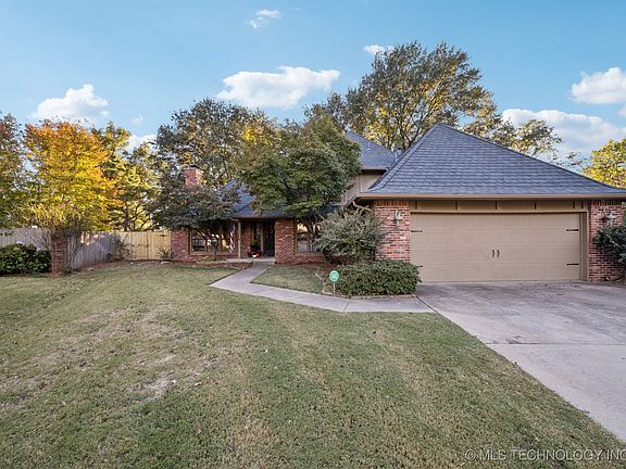 Welcome to this spacious and thoughtfully designed full-brick home boasting 3,475 SQFT (ap). Nestled in the desirable Quail Point subdivision in South Tulsa, this hm is in the Jenks Southeast School District. This beautiful property offers a perfect blend of comfortable family living & elegant design. Surrounded by beautiful mature trees, providing both charm & privacy. As you enter, you’re greeted by a warm & inviting foyer that flows into a generous Living room filled w/natural light & vaulted ceilings. Adjacent to the formal living area, the kitchen stands out as a focal point with a central island, quality cabinetry, pantry, and generous counter space. The dining room opens seamlessly to the kitchen, making everyday meals and formal dinners equally effortless—it could even serve as a wonderful home office. Just off the kitchen, a cozy den with a brick fireplace, bright windows, and rich woodwork adds an inviting touch of warmth and character.