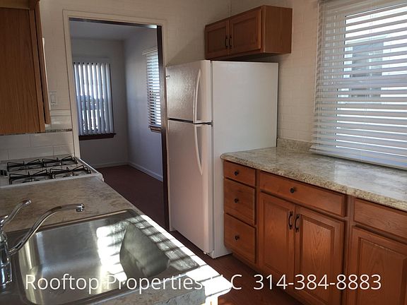 Charming 3 bedrooms and 1 bath, spacious living room, dining area, and laundry room hook ups. Lots of closet space! Updated in 2025 with fresh coat of paint throughout and all new water & sewer lines and new tub, toilet & vanity in the bathroom and new dishwasher in kitchen. Beautiful updated in 2019, with floors, tons of new windows for natural light, updated kitchen and bathroom! Central a/c. Large fenced in yard. Extended one car detached garage (manual operated) for extra storage and paved driveway for off street parking. Quiet neighborhood. Park & golf course just around the corner. This one will not last long! Call to schedule a showing today! Desirable Pattonville school district. No smoking! Need 3x rent amount in salary and 600 credit score to qualify. Tenant is responsible for mowing & trimming lawn and snow removal and paying all utilities. We will charge an additional $65 per month for managing sewer bill on tenant's behalf.