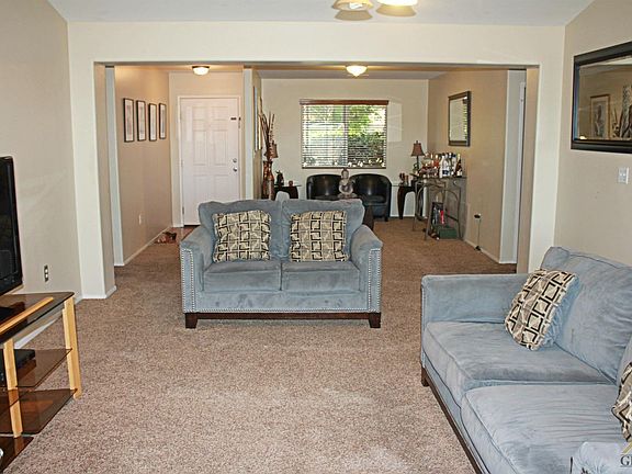 Paid solar system and water softener system! WOW! Cute split-wing 3 bedrooms, 2 bath home with wonderful North exposure. Perfect exposure to receive the most production out of your solar panels! Great Master suite privacy. Large Master, with dual his & her's closets, shower/tub combo, and dual sinks. The kid's wing has a bath with an office niche, perfect for a TV area or home office. Dining room overlooks the private porch enclosed with privacy bushes. Kitchen has large breakfast bar & nook that sits off the great room with corner fireplace. Easy to cook, eat,entertain, or just relax on movie night! Large covered vinyl patio with ceiling fans, built with permits by Sunshine Sunroom & Patio. This low maintenance vinyl covered patio does not need to be painted and there is no need to worry about termites. This home also features a Rain Soft water softener and whole home filtration system with reverse osmosis.