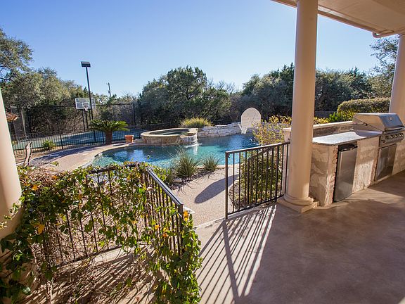 Beautiful custom home in the exclusive Overlook at Lewis Mountain. Master plus additional bedroom and two full baths downstairs. Resort style backyard with pool, hot tub, waterfall, outdoor kitchen and sports court. New upgraded stainless appliances, paint and carpet. Located in culdesac, greenbelt behind the property with lots of privacy. Hill Country views from upstairs. Exemplary schools and low tax rate. SHOWINGS BY APPOINTMENT ONLY WITH OWNER/AGENT.