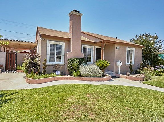 Come see this recently remodeled home in a great area of Downey with top rated schools. Features of this 5 bedrooms & 2 bathrooms home include central AC/heating, Bruce hardwood flooring, LED recess lighting, custom wood window shutters, custom baseboards, casing and crown molding throughout, newer windows throughout entire home and ceiling fans in all bedrooms. 4 US Sunlight Spectrum Series skylights Tubes, best in the industry. The custom remodeled kitchen with an open floor concept includes beautiful custom cabinetry with dovetail drawers and soft close hinges for lots of storage, granite counters of tan, brown and taupe hues, Bosch dishwasher and Frigidaire stove , under mount sink, tiled glass black splash, laminate flooring and newer fixtures. Custom kitchen door with built in blinds. The living room is roomy and spacious with a modern gas fireplace with a custom built mantel and tile flooring. Custom double patio door with built in blinds. The front yard is beautiful landscaped and has an automatic sprinkler system. The home is located close to the 605 fwy and 5fwy for an easy commute. Local shopping centers, school and parks near by.