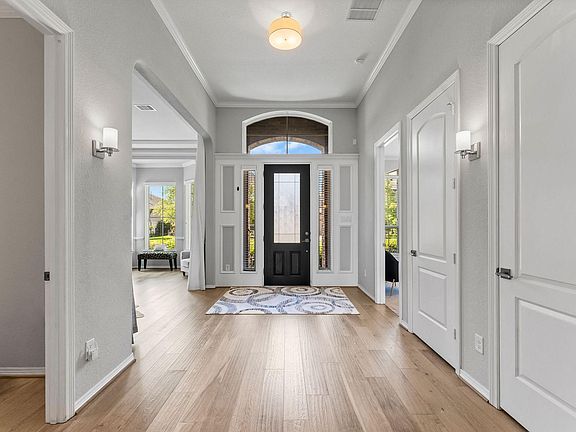 PREMIUM DESIGNED ONE-STORY HOME IN A GATED SUBDIVISION ON A PRIME LOT WITH A 24X16 COVERED BACK PATIO & 4 CAR TANDEM GARAGE! This home welcomes you with an attractive stone & brick exterior but wait until you step inside this cosmopolitan style home. Effortless flow into the OPEN FLOOR PLAN showcases impressive interiors with OVER $196K IN UPGRADES & Grand 45x23 ft room! Highlights include attractive hardwood floors, Tons of trendy chandeliers, HGTV preferred colors, Expansive family room with stately 19-ft ceiling & grand 11-ft fireplace, High-end kitchen with Electrolux appliances & Frigidaire induction cooktop(+ gas line), Upscale granite countertops/island/butlers pantry, Stepdown wine grotto with wine display wall, Supersized primary suite +bay window & seating, Elegant bathroom with XL shower +dual shower heads, Carrara marble, Multiple Flex rooms (2nd dining/gameroom/study/media), Tall 8' doors, Radiant barrier roof, No direct backyard neighbors, Built in 2015! LOVED & PAMPERED!