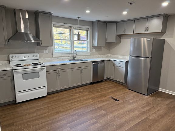 New cabinets, countertops, stainless steel appliances (dishwasher, fridge, range hood)