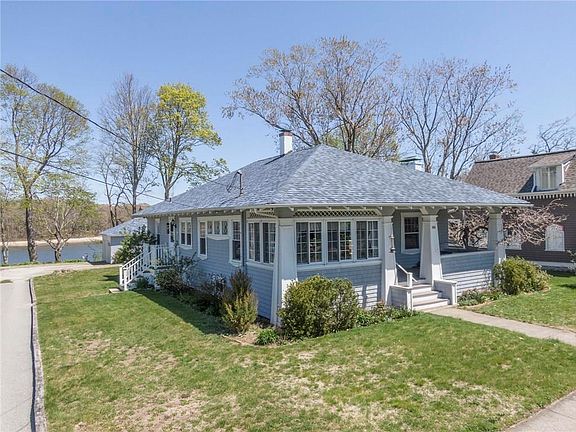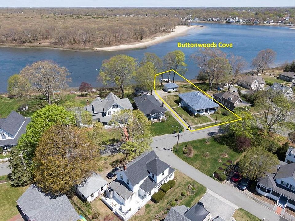1102 Buttonwoods Avenue is a cove-side waterfront Bungalow in Buttonwood Beach with a private dock. Up the front steps you'll find an 8 x 20 covered porch which leads into a 14.5 x 32 living room. This room features beautiful Douglas fir flooring and cottage style windows with a fireplace at one end. Off the front of the living room is a cozy 8 x 12 sun room with windows on all three sides. The updated eat-in kitchen has maple cabinets and Corian counters. There is an updated bathroom, a formal dining room with French doors, and two comfortable bedrooms. Between the bedrooms and kitchen is a large central hall that can act as a home office, and there is a first floor laundry closet. All the windows have been replaced, there is a young roof and newer heating & central air along with an updated electrical service. This property also has a detached two car garage, and the private dock has a newly rebuilt T-float. The neighborhood has a historic community building called The Casino with two manual bowling alleys, activities for kids, and is surrounded by three tennis courts, a pickle ball court, a playground, basketball court, and baseball field. A beautiful historic chapel in the center of the peninsula is still used for weddings and non-denominational services. The best part about living in Buttonwood Beach is the close sense of community; come see what a special place this is to live. (No flood insurance required.)
