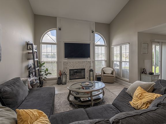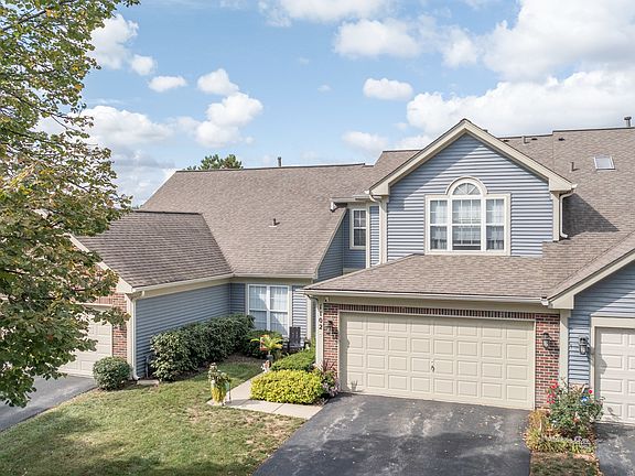 Welcome to this beautifully updated 3-bedroom, 2.1-bath townhome in highly sought-after Cobblers Crossing-perfectly situated on a serene pond with peaceful views year-round. Step inside to an inviting family room with soaring vaulted ceilings, a cozy fireplace, and updated vinyl flooring that flows throughout the main level. The bright and modern kitchen features stainless steel appliances, quartz countertops, a tile backsplash, a breakfast bar, and a spacious pantry. Enjoy your morning coffee or unwind in the evening on the private patio just off the kitchen, overlooking the tranquil pond. Convenience is key with a main-level laundry room located right off the garage. Upstairs, the primary suite offers dual sinks, a stand-up shower, and a separate soaking tub-ideal for relaxing after a long day. Two additional bedrooms and a full hall bath complete the second floor. Peace of mind comes with major components already updated: water heater (less than 1 month old), furnace and A/C (1 year old), and roof (8 years old). The attached 2-car garage provides ample storage and parking. The HOA covers exterior maintenance, landscaping, and snow removal, allowing you to enjoy low-maintenance living. Located close to shopping, dining, and conveniences, this home blends comfort, style, and an unbeatable setting. Don't miss this opportunity to own a stunning pond-side townhome in Cobblers Crossing!