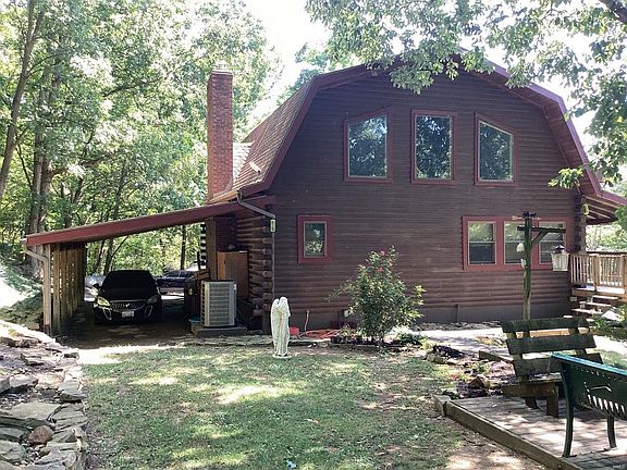 Weekend getaway or Hunters paradise, gathering space Just in time for hunting season or perfect city escape opportunity, boating near by, nature galore, 3 floors of living space to spread out with two wrap around decks in this large luxurious Lincoln log custom cabin wood with work throughout on over 29 acres of land with rock bluffs, hiking trails, atv trails, 6 acres of open living space, 2 open fields, 3 bedroom 2 bath with walk out lower level, two covered wrap around decks, jacuzzi tub, fire place, large martin building for all your atvs, toys, car projects, perfect hunting deer and turkey off the back porch, plenty of space for hunting blinds or go deeper into your woods, off roading, relaxing, car port, two level decks, gazebo, koi fish pond, gazebo, fire pit, in Gorham water district but also has well not hooked up. Perfect for airbnb, vrbo, etc. Lodge Close to Shawnee National Forest see the seasons change, Chester, Mississippi River, St Louis. Property includes 2 parcels
