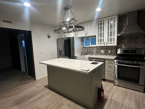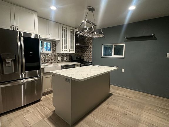 This 3 bedroom, 2 bath house is located in a quiet neighborhood, close to the new Sierra Trading Post, Five Below, Ulta, and Raley's. Both bathrooms have been tastefully remodeled with new cabinets, fixtures, and flooring. The kitchen has been thoughtfully designed, featuring stainless steel appliances, new flooring, an apron sink, and a central island with a convenient overhead pots and pans hanger.