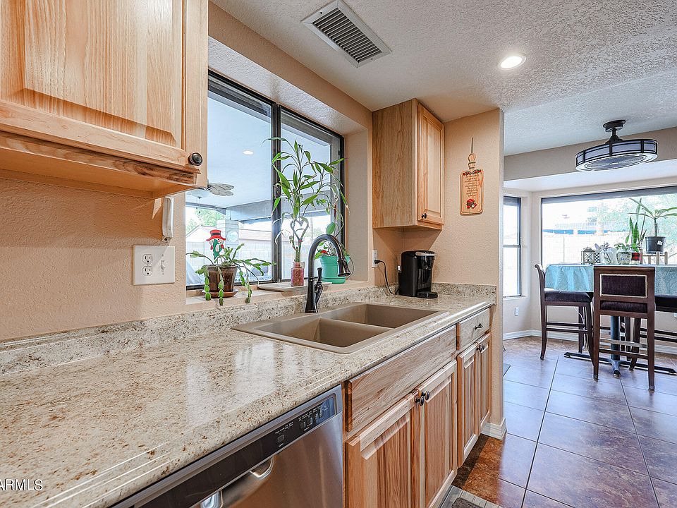 If you haven't seen this home yet you are missing a wonderful home!!Move-in ready! 3 Bedrooms/2 Baths 2 Car Garage * 2144 Sq Ft * Custom Hickory Kitchen Cabinets in 2017 * Newer Appliances* Wood Laminate Flooring * Tile * New Water Heater 2021* Formal Living Room and Dining Room plus Family Room and Breakfast Room * Wet Bar * Large Covered Patio * Block Fence * Roller Shields on All Windows Installed in 2011 Plus EZ Care Stone Landscaping, and Plantings * Mountain Views * Perfect Home to Lock and Leave....Welcome!!!!!
