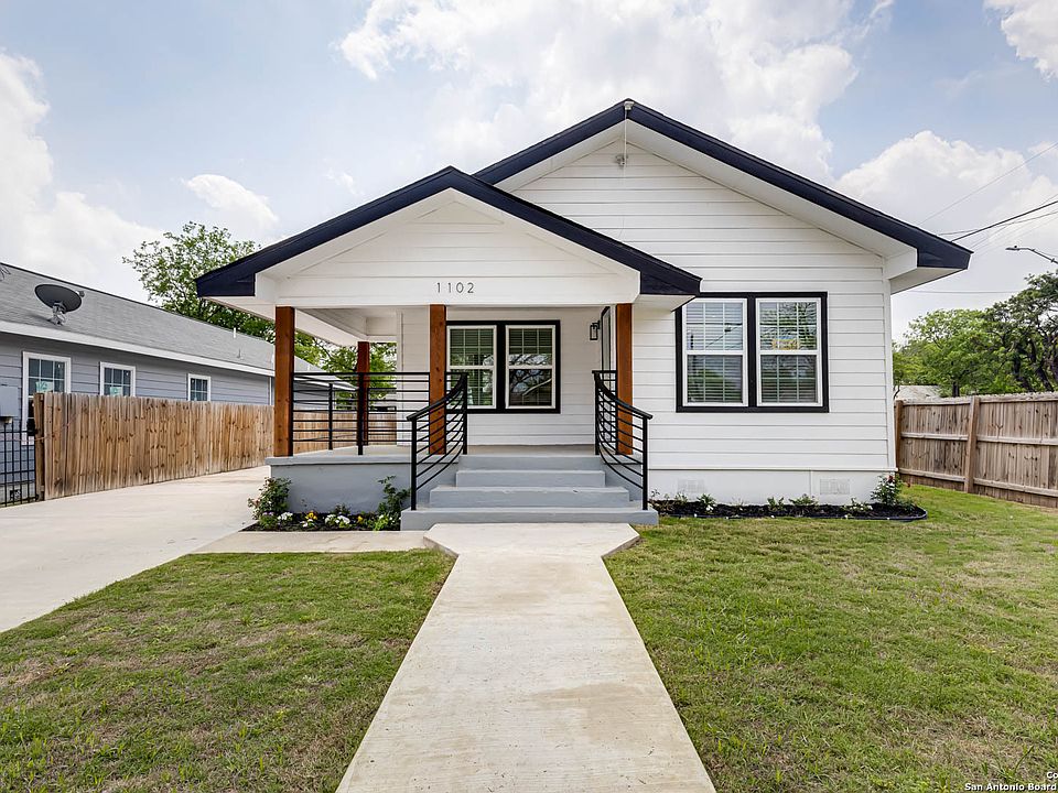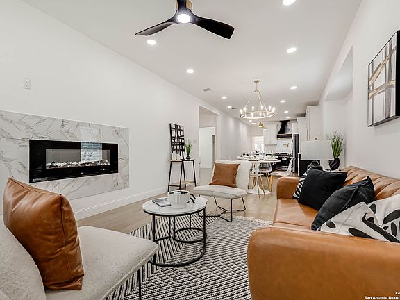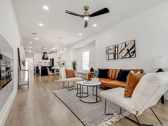 From gracious entertaining areas to its bright, welcoming interior, this home has been exceptionally renovated from top to bottom with stylish finishes that perfectly complement the needs of the urban-luxury lifestyle while capturing the vibrant spirit of downtown San Antonio! Notable features include a 4BR+2BA, granite countertops, vinyl plank flooring, stainless steel appliances, including a newly installed refrigerator that adds sparkle to the home, tiled backsplash, quartz countertops, abundant soft-closing 42' cabinets and a custom wood vent hood, glass shower doors, and a tankless water heater, to name a few. Generous primary en-suite offers a luxe his/her spa-like shower, dual vanity, a walk-in closet with custom built-in shelves, and double French doors give access to the backyard with a custom deck making alfresco gatherings blissful!. Secondary bedrooms are generous in size. Bonus space off the back of the home completes this gem and makes for a great at-home gym or a creative studio to enjoy your hobbies of choice. Conveniently located near highly sought-after San Antonio attractions, including The Pearl Brewery, Riverwalk, Zoo, Frost Bank Center, and so many more!