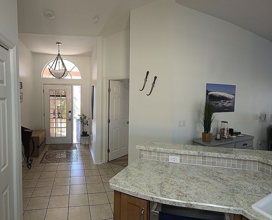 Screen-enclosed pool and spaArched windowsSoaring vaulted ceilingsFenced tropical backyard oasisFreshly painted exteriorScreened-in back porchLush maintenance-free landscaping