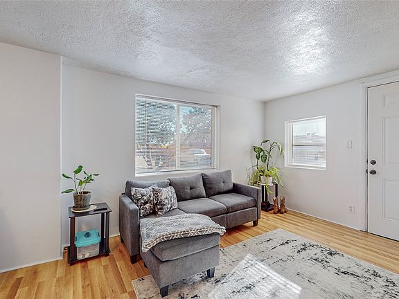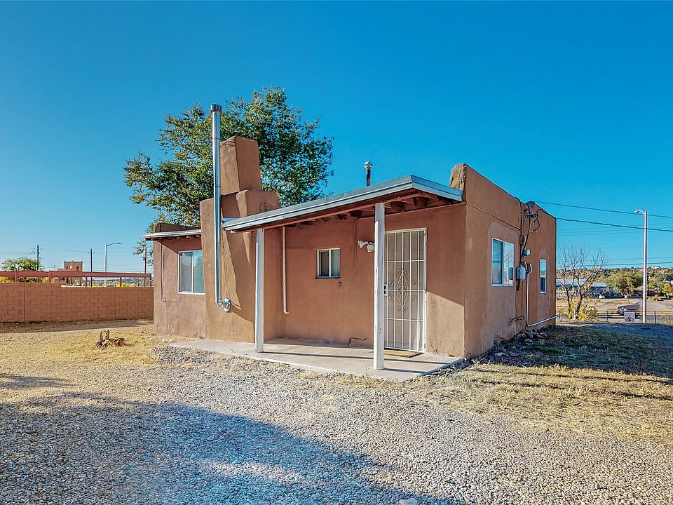 This property is a super small house with 2 bedrooms and 1 bathroom. The indoor space is approximately 800 square feet with a big lot of a quarter of an acre right on Agua Fria. The house has a small outdoor roofed porch and a cozy living area with a furnace/fireplace. The kitchen is small but has a 4-burner electric stove/range. In the middle of two almost identical bedrooms is a bathroom, and one of the bedroom closets has a combo washer/dryer. The flooring is really cute with laminate on top, and it’s light and bright inside. This property presents an excellent opportunity for minimalist living, and the vibes in this small place talk to you. It’s located in True Agua Fria Santa Fe Living amongst vibrant corridors of Santa Fe, close to River Trail & Frenchy’s Park. The excess land right on Agua Fria presents boundless opportunities, maybe for a small business or your dream garden