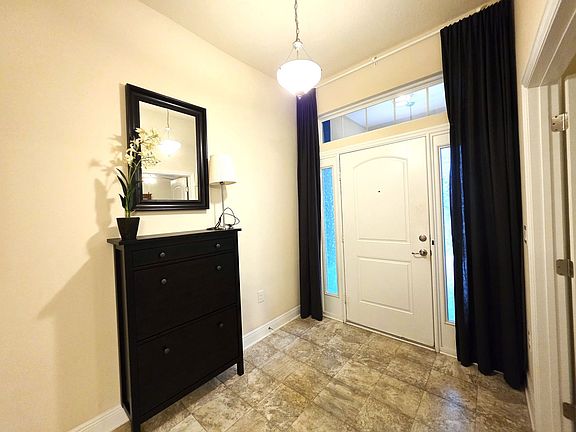 For Rent. Spacious and immaculately kept 4 bedroom, 2 bathroom, 2 car garages with charging station for electric cars, nice and clean home on corner lot. Well maintained landscaping included in monthly rent. Large kitchen with lots of elegant wood cabinets, stainless steel appliances and roomy pantry. Breakfast bar and lovely breakfast area. Open floor plan to formal dining room and living room. Split floor plan, sizable master bedroom with walk-in closet. Master bath with dual sinks, large shower and soaking tub. Light and bright with tinted windows, covered front porch and back patio. Just minutes away from shopping, dining and sandy beaches.