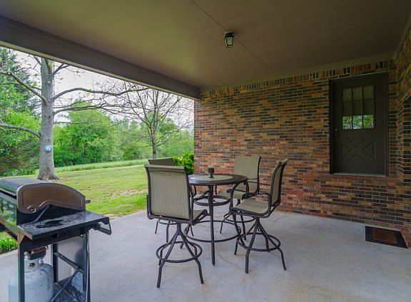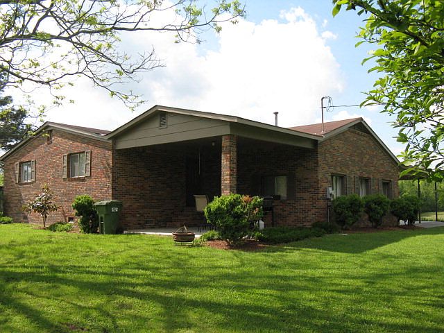 Country living! 3.9 beautiful rolling acres, mostly level, unique brick rancher that steps up from kitchen to living room and bedrooms. Really nice covered patio overlooking beautiful front yard. Spacious rooms, kitchen has pantry, barn for storage, well with new filtration pump.