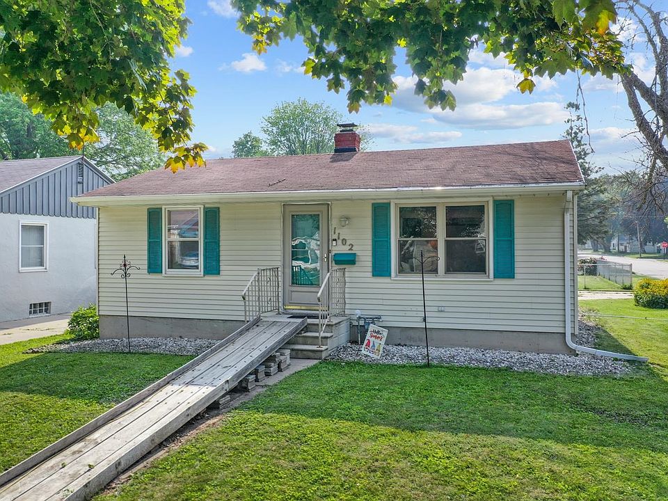 Charming 2BR/1BA ranch on a corner lot greets w/ ramped entry to a bright living room w/ original HW floor, vinyl windows, and fully-equipped kitchen w/ all appliances & modern cabinetry. Primary bedroom also enjoys oak HW floor. Updated bath w/ pedestal sink & tile floor. LL offers a partially finished rec-room & office w/ completed drop ceilings. Laundry room includes washer+dryer! Exit rear of home stepping down to patio that extends into extra parking for 1.5 stall detached garage. Fenced yard also offers a bonus shed. 1 block from Mather Heights Park, easy access to downtown.
