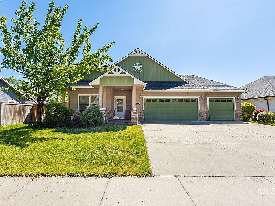 Check out this beautiful single level home in Star! 3 bedroom, 2 bathroom plus an office with a 3 car garage, plus solar panels for low electric bills. This home has been well cared for and is centrally located in the heart of this small town. There is an office up front with french doors. A great room with a corner gas fireplace. Kitchen open to the dining room with beautiful Hickory Hardwood floors. The kitchen features stainless steel appliances, gas oven, built in microwave, lots of cupboards, counter space and a large pantry. Large Primary Suite with a walk in closet, dual vanity, separate tub and shower. Two additional bedrooms with ceiling fans. Fully fenced East facing backyard with full sprinklers and a storage shed. The gas HVAC was replaced in 2018. The garage is fully insulated. There is a neighborhood park at the end of the street and all your shopping needs within minutes of the home. You do not want to miss this one!