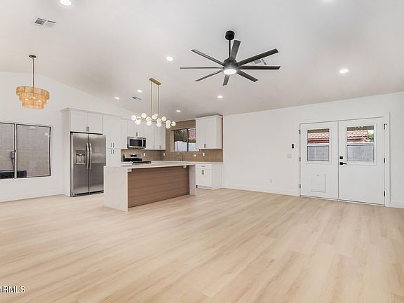 BEAUTIFULLY REMODELED, ready to move in! This fantastic single-level home offers 3 beds, 2 baths, 2-car garage, & a low-care landscape. The interior exudes refined style with vaulted ceilings, fresh neutral paint, new ceiling fans & light fixtures, and new wood-look flooring t/out. You'll love the desirable open layout that tastefully complements the home's modern vibe! The renewed kitchen boasts new SS appliances, quartz counters, white shaker cabinetry, tile backsplash, and waterfall island w/breakfast bar. Perfectly sized bedrooms, with the main bedroom includes a walk-in closet. Both primary & secondary bathrooms have been updated with newer fixtures. Sizable laundry room w/new cabinets. Enjoy the large backyard with a covered patio & artificial turf! Great Gilbert location! Just WOW!