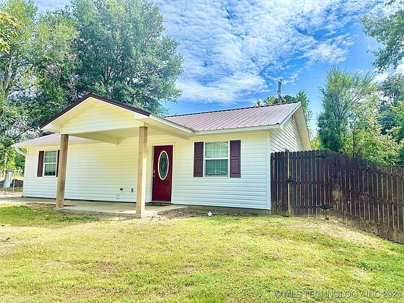 Check out this delightful two-bedroom, one-bath home nestled on half an acre just off H Street in the heart of Stigler. This property combines comfort with convenience, located just minutes away from the beautiful Roye Park and the golf course, perfect for outdoor enthusiasts. This energy-efficient home features a fully electric setup and boasts a durable metal roof, ensuring both sustainability and longevity. The backyard is enhanced by a privacy fence, creating a serene retreat for relaxation or entertaining. Recent upgrades include new gutters, ensuring the home is both functional and low-maintenance, granite countertops and new refrigerator. The sale includes all appliances, making it easy for you to move in and start enjoying your new space right away, with a washer and dryer included for added convenience. Don’t miss the opportunity to make this charming home your own!