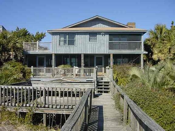 Spacious, Cypress ocean front 5+BR/5+BA raised beach house in North Litchfield. Very private with lush landscaping and palmetto trees surrounding the home. Three vehicle carport under house with enough parking for at least six cars.Two HVAC systems, one per floor. The house was built about 1970 and the master suite addition was added in 1996. The ground level has a one car garage, small kitchen, two bedrooms and one full bath. The bedroom has a tile floor with a sitting room and french doors leading to a private screened porch. Outside on this level is a shower and toilet, storage closet and large covered hot tub area plumbed for a hot tub. On the second level, a nice size foyer offers some security leading into the home. A formal dining room will accomodate many for a sit down dinner. The large sunken paneled living room has a fireplace, beamed ceiling with two ceiling fans, and a door leading to the screened porch and the beautiful ocean view. Tile floors are in the kitchen, dining room and laundry room. The large Master Bedroom is carpeted with a sitting room, and french doors opening up to a private screened porch for a beautiful ocean view. Off the Master Bedroom are His and her closets, and his and her full baths, making this a private hideaway. Tiled showers and floors in each bathroom. Another bedroom, with a full bathroom on the second level, has french doors going out to a private Carolina room with lots of windows. This Carolina room has a tile floor and ceiling fan. It also has a separate entry to a small deck, as well as a pass through to the kitchen, with a small breakfast bar. This room may also be used as a den/study. The second floor has three bedrooms. One bedroom has sliding doors leading to a private large balcony. The second and third bedrooms are connected by a Jack and Jill full bath. The third bedroom also has a private balcony with a view of the ocean. Coffee table in living room does not convey. Brokered And Advertised By: The Litchfield Company RE Listing Agent: James Bindner