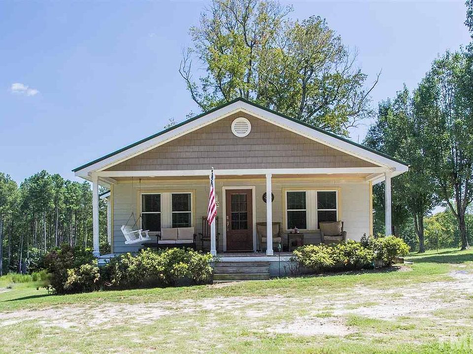 Charming bungalow with ADDITION that needs to be cosmetically finished out. Main house has wood floors throughout, open kitchen w/island, breakfast nook and ample cabinets. Master suite has luxury bath with tub and separate tiled shower. You will love this bathroom! Separate laundry separates the open addition that has tons of windows, fireplace, recessed lights and soaring ceilings. Nice rocking chair front porch and all sitting on 3.82acres just minutes to highway, shopping, airport and RTP.