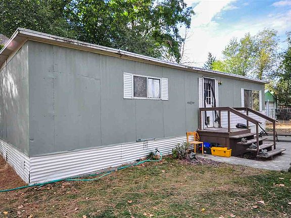 Quiet, secluded property in an area of nicer homes, surrounded by mature trees and completely fenced. Large lot includes a two-bedroom, one bath double wide mobile home, large garage/shop, water feature, area for a large garden, and two storage sheds. Home has newer sealed roof, central air, and front porch sitting space. Motivated seller!