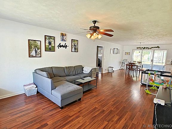 Welcome to this spacious 2-bedroom home, offering 1348 sq ft (per CH) of comfortable living space. The home features a large living room, perfect for family gatherings or entertaining. With no carpet throughout the home, cleaning and maintenance are a breeze. Centrally located in Tahlequah, this property provides easy access to local amenities. The fenced backyard offers a great space for outdoor activities, while the large bedrooms and bathroom add to the home's appeal. Whether you're a first-time homebuyer or looking to downsize, this home is a great choice. Don't miss out on this conveniently located, spacious property!